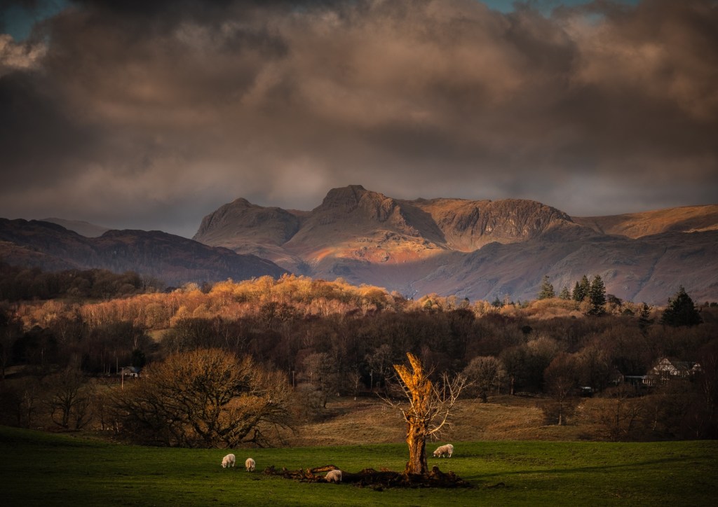 As you saunter down the lane eyes left to seek out Blelham Tarn in the distance. The fields are still green in autumn and the sun shines as much as it rains, regular as clockwork. So be sure to at least carry a brolly in case speeding showers give you an unexpected drenching.