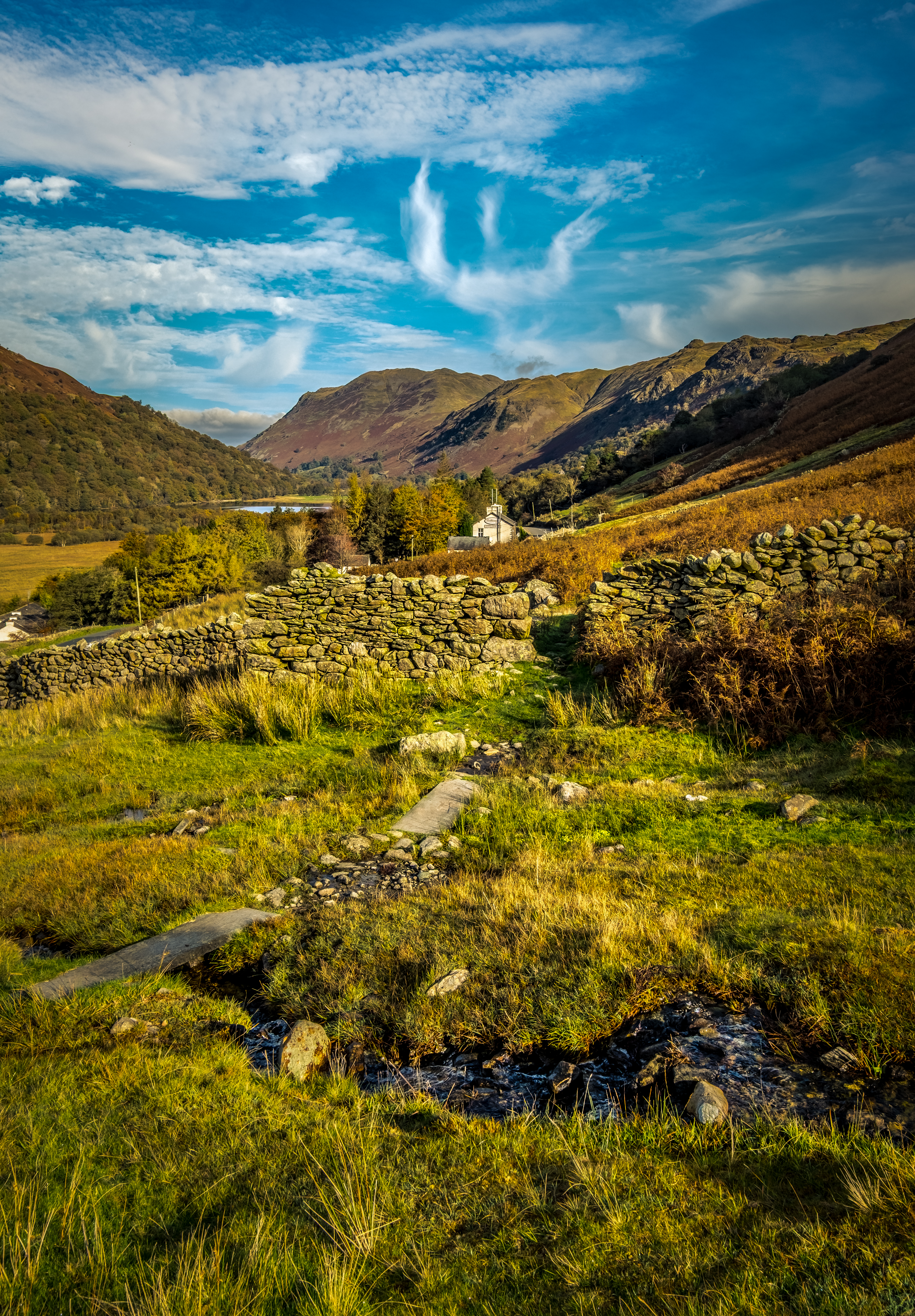 As you saunter down the lane eyes left to seek out Blelham Tarn in the distance. The fields are still green in autumn and the sun shines as much as it rains, regular as clockwork. So be sure to at least carry a brolly in case speeding showers give you an unexpected drenching.