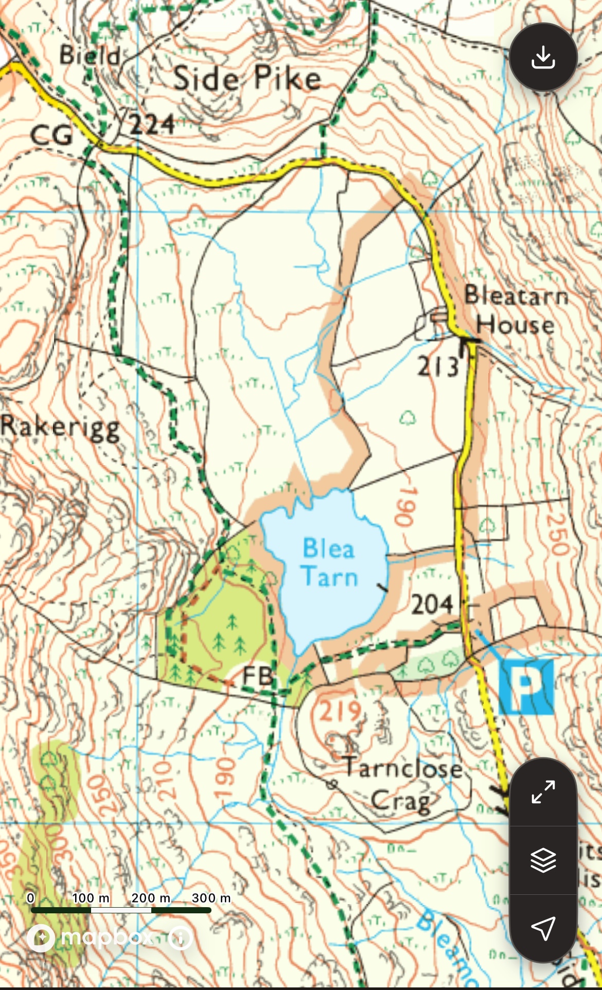 The tarn is always visible over the wall to your left and and the Langdales will seem huge the closer you get to Bleatarn House. Despite being on a sealed road it feels wonderful to be up high in open country.