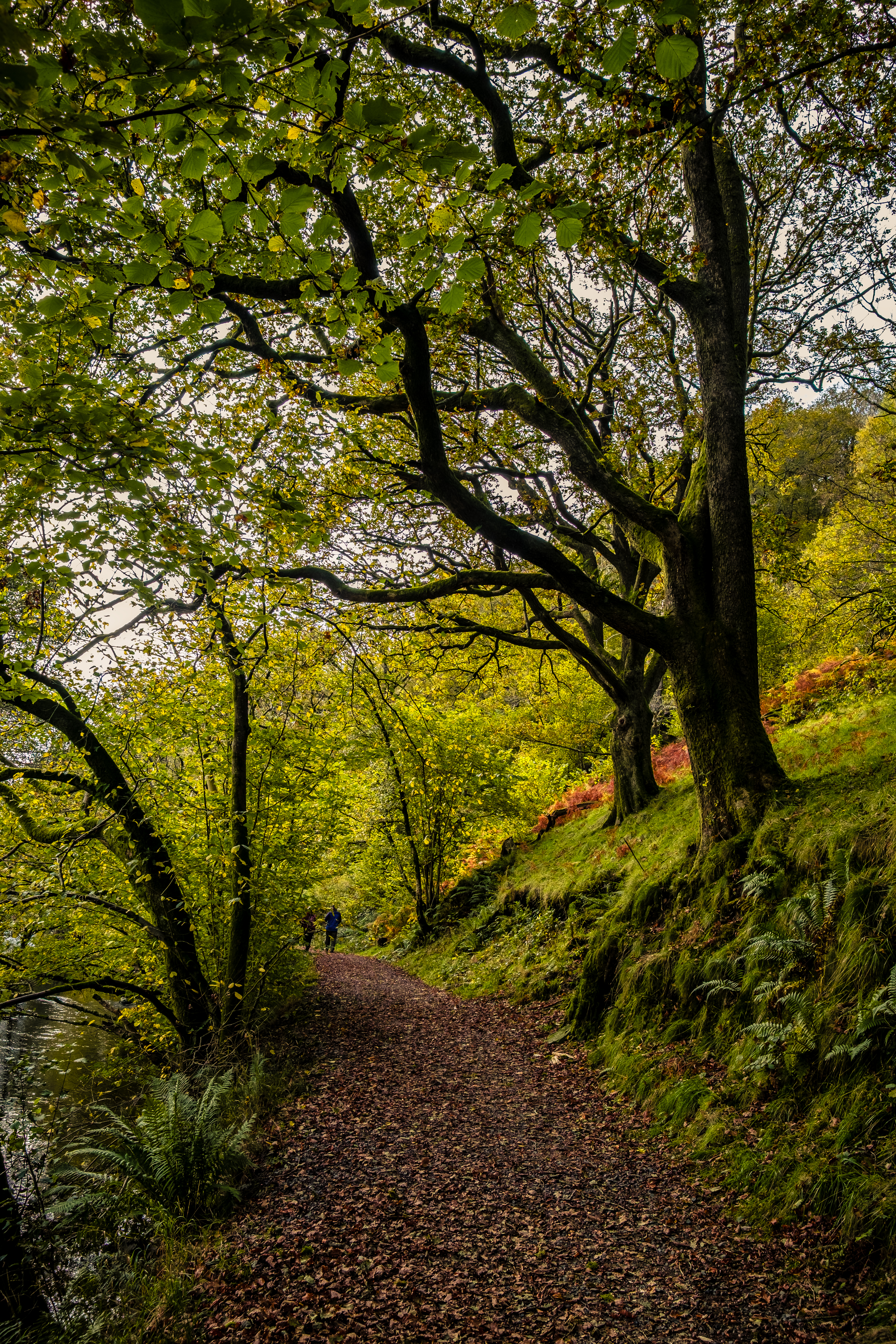 More iron gates end this section and you enter the woods of Wray Crag. Take a short detour out to your left with more stunning views up the lake. Many trees here are superb specimens and in autumn the ground is a thick leafy mattress.