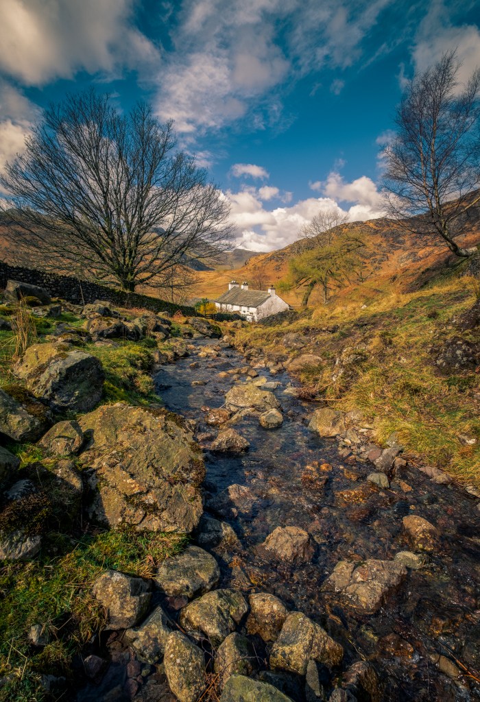 Bleatarn House and beck tumbling down from Lingmoor Fell