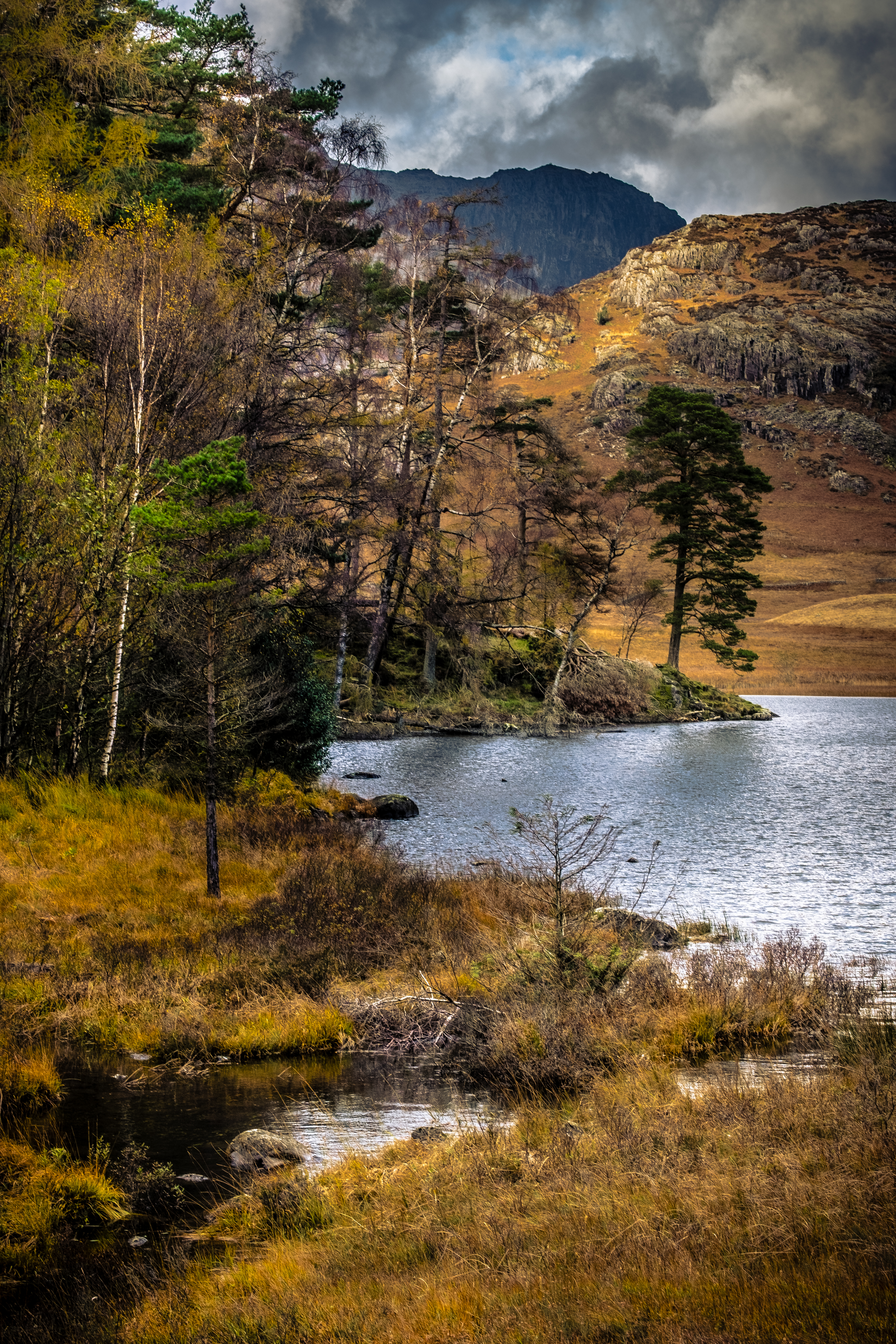 Blea Tarn from Lingmoor Fell with Pike O’Blisco towering above